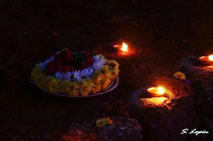 Le 13 décembre, nous fêterons la Sainte Lucie, fête symbolisant la victoire de la lumière sur les ténèbres. Cette tradition qui soulignait rituellement le passage à l'équinoxe d'hiver, est encore vivante dans les pays du Nord, de même en Italie. Elle reviendra sans nul doute dans nos contrées , tant la soif de lumière est grande. En banlieue parisienne, mais surtout dans les campagnes , on peut voir de véritables "Disneyland" dans les jardins !
